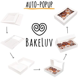 ✅ PACKAGE CONTENT: This set contains 20 - 12 count 12x8x2.5 Inches bakery boxes. Auto-Popup means assembly is not required; simply unfold the box and it will pup-up into shape so you can pack your delicious treats.