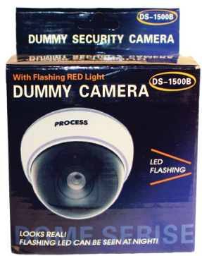 The DOME DUMMY CAMERA WITH FLASHING LED looks just like the real thing. Real camera housing without the camera. Features a flashing LED and metal mounting bracket. Installs easily using stainless steel screws. This unit contains a flashing red LED light which draws extra attention to the camera, particularly at night.