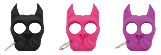 Made of impact resistant ABS plastic, this keychain accessory is so strong it will give you the power of steel wrapped in a defenseless looking dog-shaped keychain accessory. Guard yourself against unwanted advances: put your fingers through the eyes of Brutus and watch the tips of his ears transform into pointed jabbers that will keep any attacker at bay. Available in 3 different colors. You can protect yourself in black, pink & purple. Make Brutus your own personal guard dog today! Product Features •Fits on Keyring - Stylish Accessory •Great Detailed Design •Eyeholes Fit Most Fingers •ABS Plastic Impact Resistant Material •As Strong as Metal