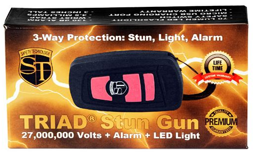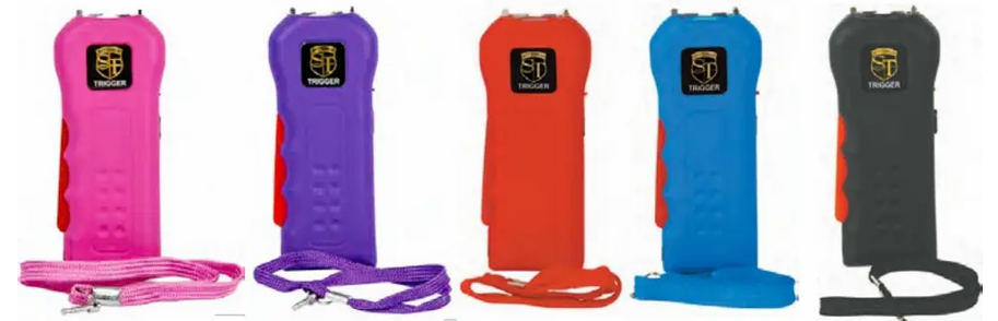 The Trigger stun gun comes with a disabling pin wrist strap that is an added safety feature. With the strap around your wrist, if the stun gun were to be knocked out of your hand or taken away by a thug, it will be rendered useless. It is available in 6 colors Black, Blue, Pink, Purple, Red