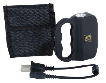 The Talon's trigger is hidden by the palm of the hand, so just a quick squeeze of the stun gun fires high voltage, low amps through an attacker when needed. The sound of the Talon's stun may defuse a dangerous situation before it even begins! It has a blinding 120 Lumen LED flashlight and a rubberized coating for a superb grip. You can carry the Talon in your hand, pocket, or in the nylon belt holster that's included. The Talon comes with a charging cord to recharge the stun gun and flashlight. It uses nickel cadmium rechargeable batteries.