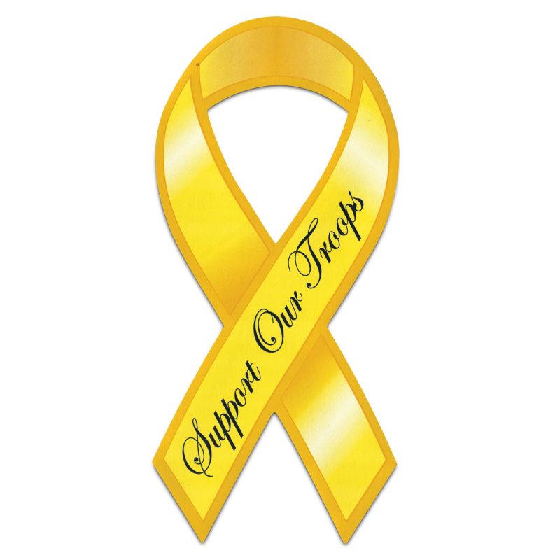 100 Large Yellow Support Our Troops Patriotic Ribbon Magnets measure 8″ tall x 3.875″ Wide and are made out of a heavy gauge magnetic vinyl. Show your support to the Men and Women who defend the USA. Great to use on your car, truck, desk, refrigerator, locker or any metal surface. Adheres easily and peels off with no damage.