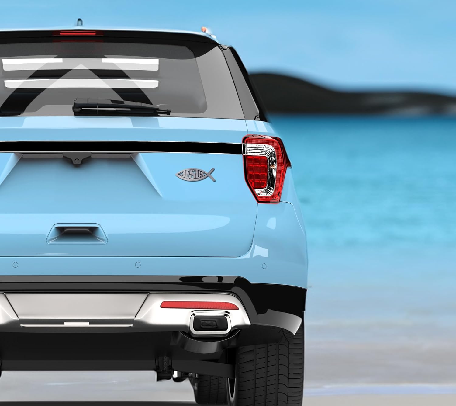 which was the fish. We are fortunate today to be free to display our faith. This auto emblem has JESUS shaped as an Ichthus. Show that you are a follower of Jesus by placing this Christian Ichthus and Jesus symbol on your car. With a silver finish, the Christian Ichthus with Jesus symbol of faith is weatherproof and assures it will stay on your car for years to come. Measuring 5 inches in length this Christian Ichthus and Jesus auto emblem fits perfectly on any part of your car.