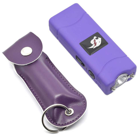 Mini Stun Gun Pepper Spray Combo Pack for Self Defense - Extremely Powerful Stun Gun with Bright Led Flashlight 1/2 Ounce Police Grade Max Strength 10% Pepper Stream with Pouch.