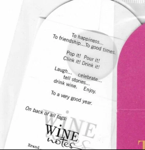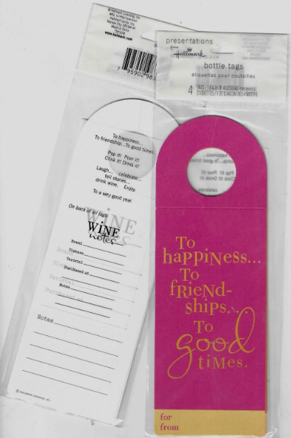 BOTTLE TAGS Pack of 4 different color GIFT TAG Wine ............. Hallmark